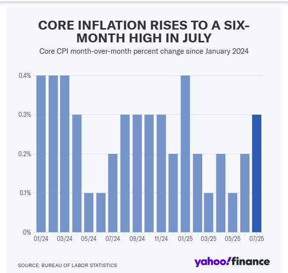 Temmuz ayında çekirdek enflasyon 3,1% ile beklentilerin üzerinde artarken, Trump yönetiminin gümrük tarifelerinin tüketici fiyatları üzerindeki etkisi tartışma konusu oldu. Fed’in eylül ayında faiz indirme olasılığı ise güçlendi. Hisse senetleri ve tahviller veriye olumlu tepki verdi.