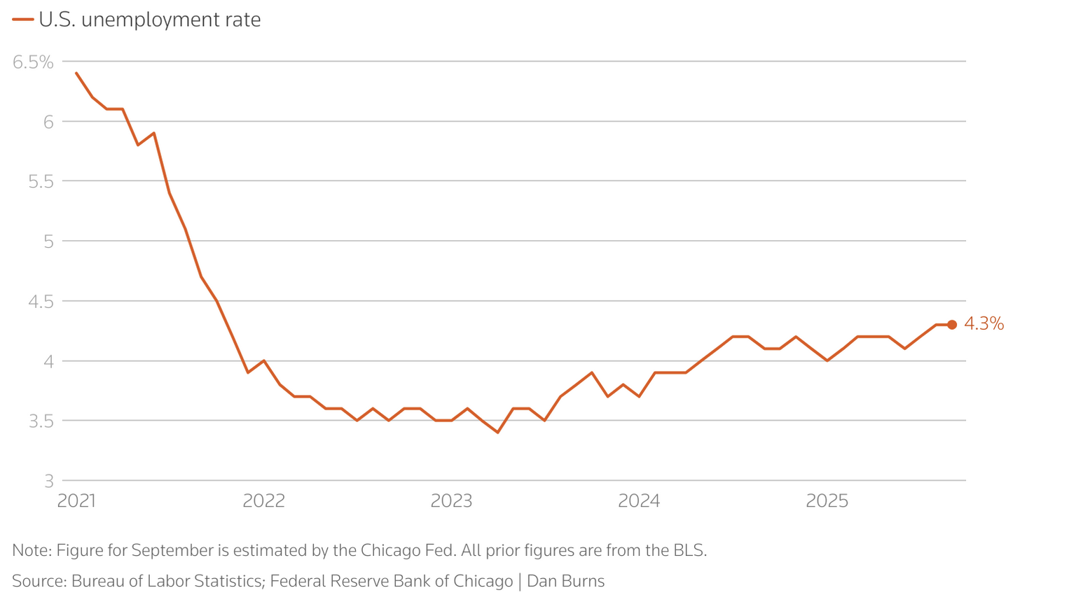 Resmî verinin yokluğunda öne çıkan araçlardan biri, işsizlik oranı ve iş akışlarını (işe giriş–çıkış) eş zamanlı tahmin etmeye çalışan bölgesel bir merkez bankası göstergesi oldu. Bu göstergeye göre eylülde işsizlik oranı bir önceki aya kıyasla çok sınırlı bir artışla yaklaşık yüzde 4,34 seviyesine çıktı. Ağustosta bu oran yüzde 4,32, geçen yıl eylülde ise yüzde 4,09 olarak tahmin ediliyordu. Piyasa anketlerindeki genel beklentiler de eylül işsizlik oranının yüzde 4,3 civarında yatay seyrettiğine işaret ediyordu. Bu paralellik, işsizlikte keskin bir sıçramadan ziyade, kenarlarda devam eden bir yumuşamanın sürdüğünü düşündürüyor.