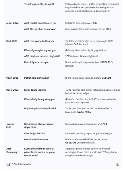 Peterson Institute for International Economics’in Eylül 2025 Küresel Görünüm Raporu’na göre, küresel GSYİH’nin 2025’te yüzde 3,1, 2026’da ise yüzde 2,9 artması öngörülüyor. Bu oranlar 2024’teki yüzde 3,3’lük büyümenin altında kalıyor.