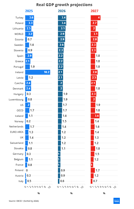 OECD: 2026’da Avrupa’nın Yıldızları: Türkiye, Polonya ve Litvanya