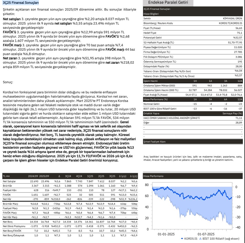 Gedik Yatırım Raporu: KORDSA Teknik Tekstil 3Ç25 Finansal Sonuçlarını Değerlendirdi