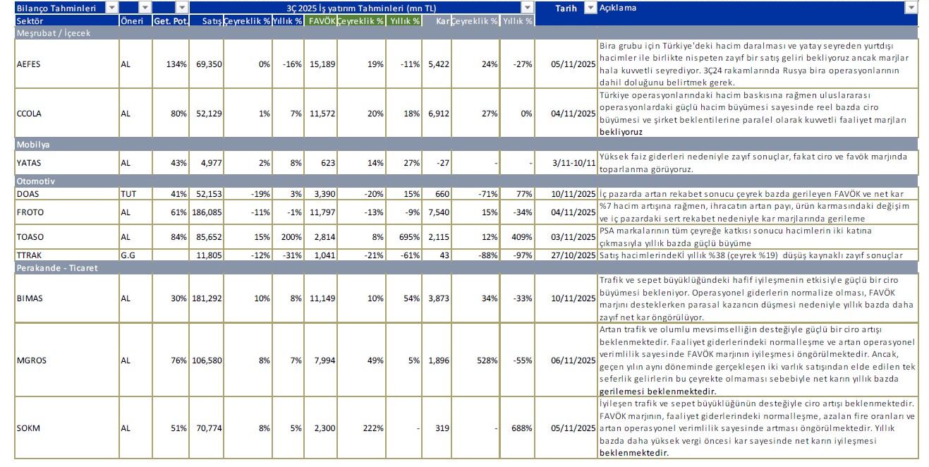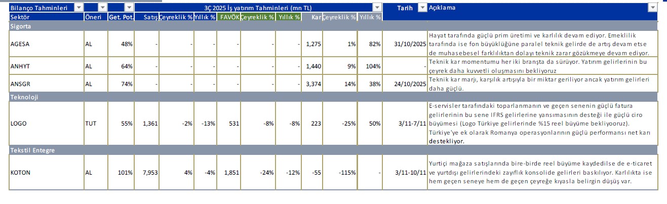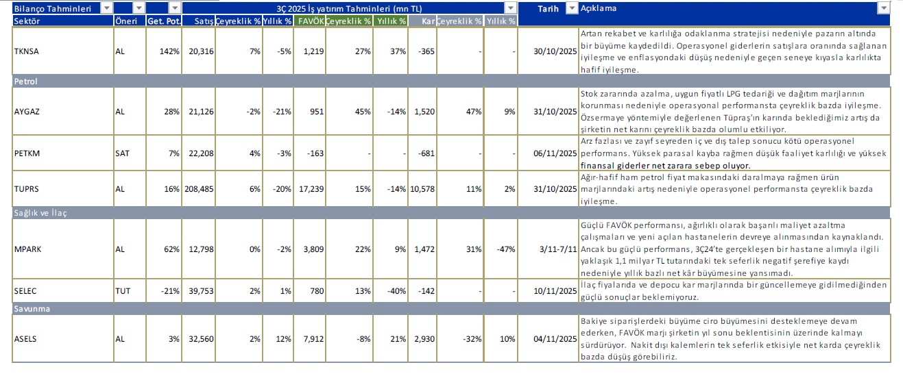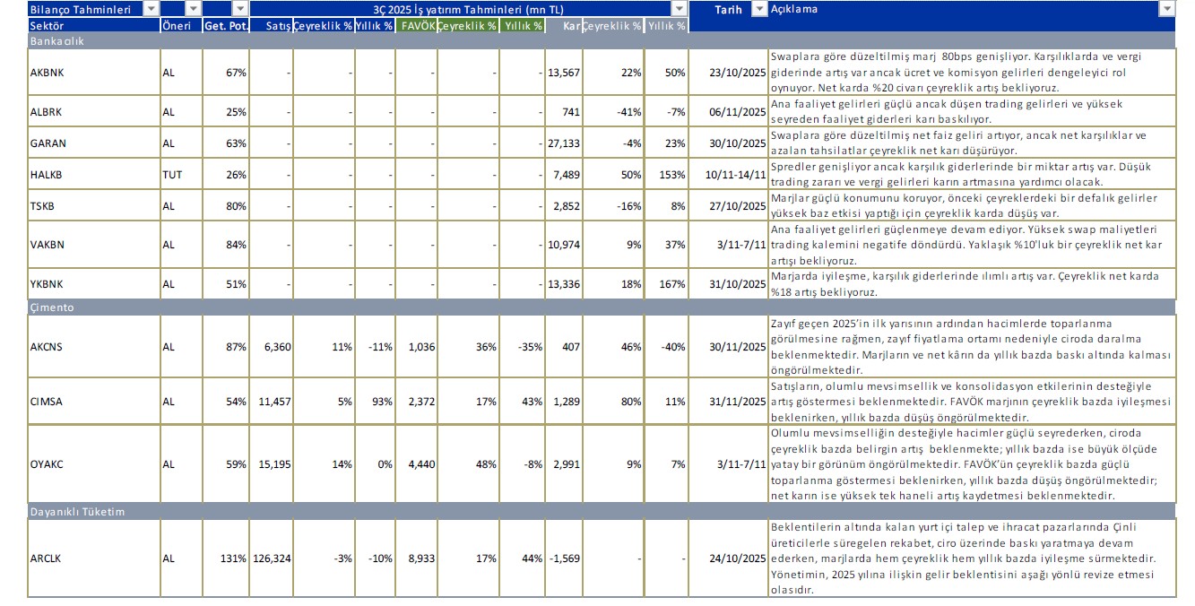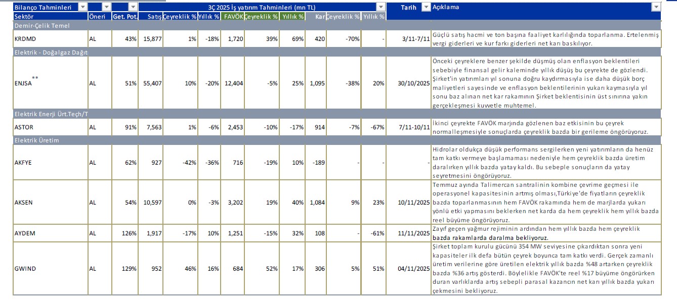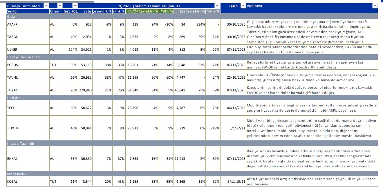 İş Yatırım’dan 3.Çeyrek 2025 Bilanço Tahminleri