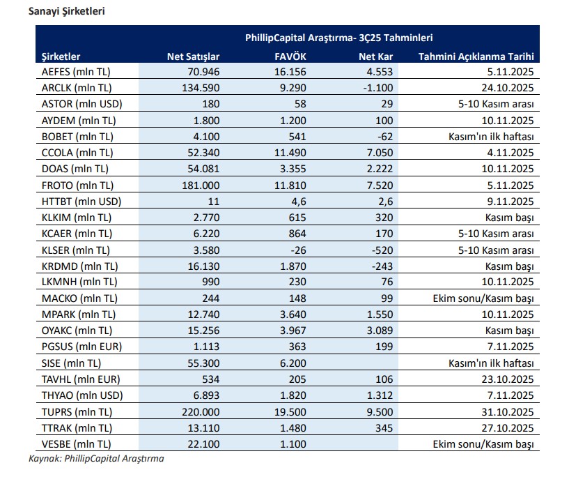 PhillipCapital’den 3Ç25 Kar Tahminleri