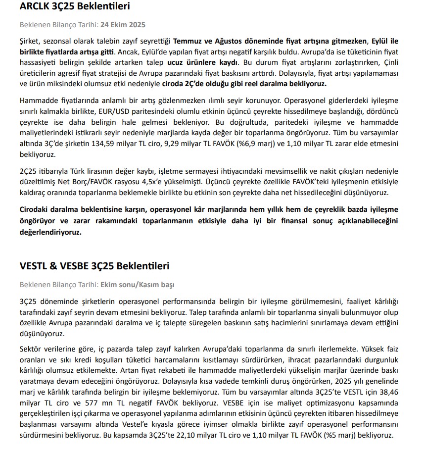 2025 yılı 3. çeyrek dönem finansal sonuçları bu haftadan itibaren açıklanmaya başlanacak. Konsolide olmayan finansal sonuçlar için son tarih 30 Ekim olup konsolide sonuçlar 10 Kasım tarihine kadar açıklanacak.
