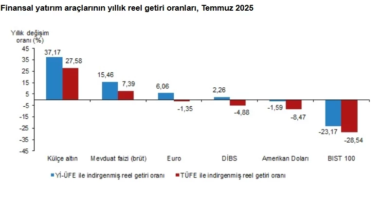 PARA ANALİZ- Türkiye İstatistik Kurumu (TÜİK) temmuz ayına ilişkin finansal yatırım araçlarının reel getiri oranlarını açıkladı.