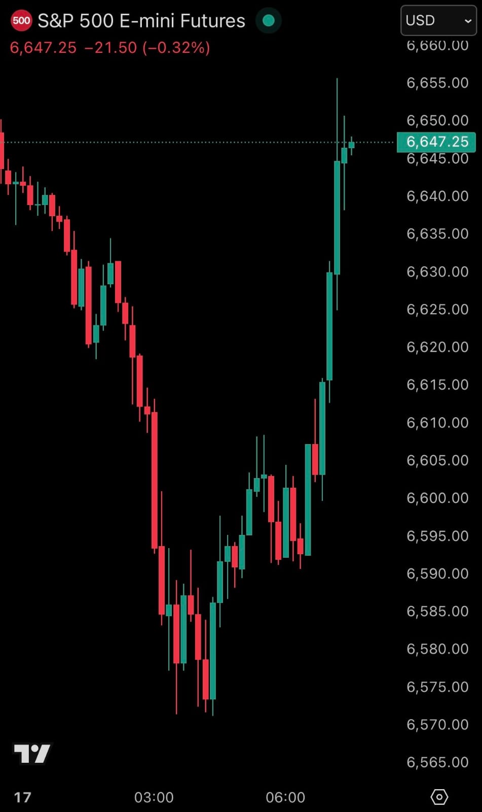 İşte bu cevap hisse senetlerinde, özellikle de vadeli piyasalardaki düşüşe fren oldu. Kayıplar geri alınmaya başladı. İşte haber duyulmaya başlandıktan sonra vadeli piyasalardaki harekete grafiksel bir örnek: