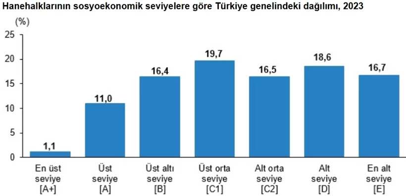Çalışma, gelir, eğitim ve meslek verilerini bir araya getirerek hanelerin sosyoekonomik statülerini sınıflandırıyor. Rapor, 2022-2024 verileri kullanılarak hazırlandı; referans yılı ise 2023 oldu.