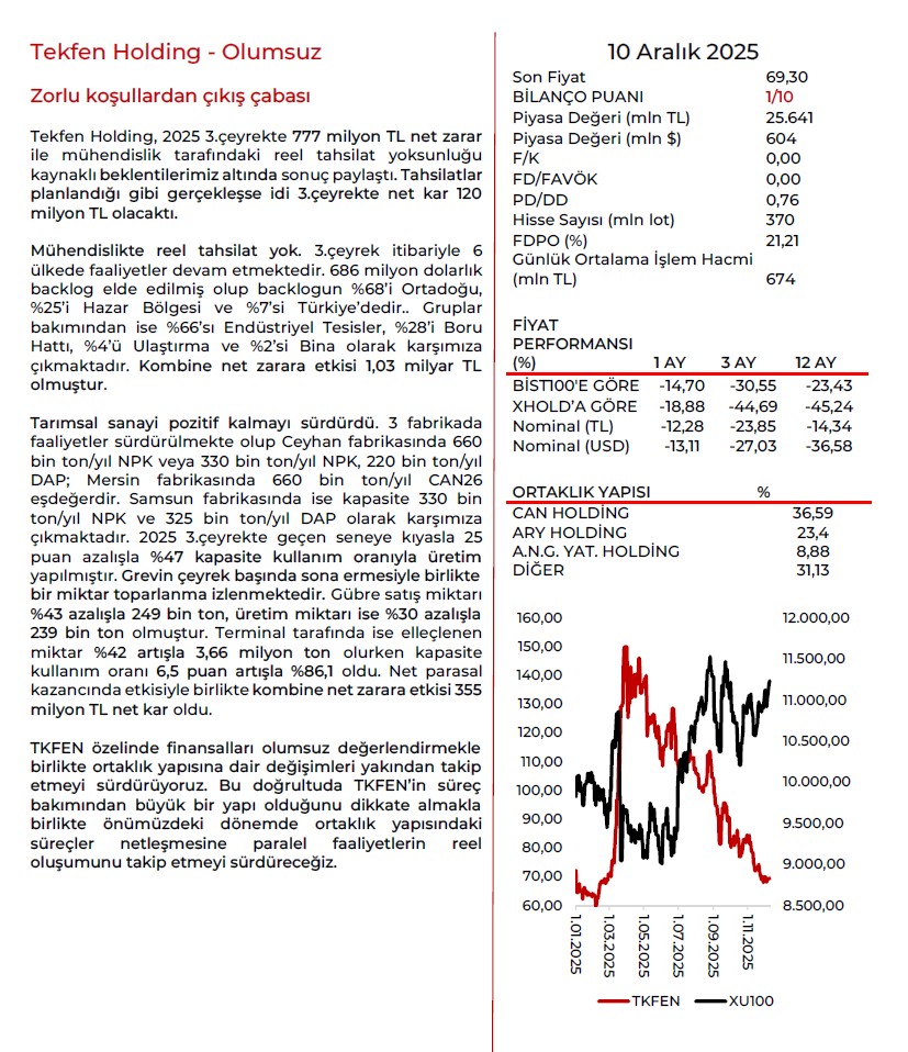 Marbaş Menkul Değerler’den Tekfen Raporu