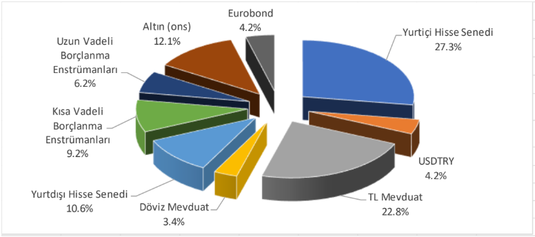 Piyasa Profesyonelleri Anketi’nin portföy dağılımı sorusuna verilen yanıtlara göre Kasım ayında piyasa profesyonelleri portföylerinde önceki aya göre TL mevduat, kısa ve uzun vadeli yurtiçi borçlanma araçları ile altının ağırlığını artırdı, yurtiçi hisse senedi, spot döviz, DTH, yurtışı hisse senedi ve yurtdışı borçlanma araçlarının ağırlığını düşürdü. Böylece TL bazlı varlıkların portföy içindeki ağırlığı Ekim ayındaki %62.1 seviyesinden Kasım’da %65.5’e yükseldi. Bu oran anketin başladığı Ocak 2023’ten bu yana en yüksek ikinci orana işaret ediyor. TL bazlı varlıkların portföydeki ağırlığı %73.0 ile Aralık 2024’te en yüksek seviyeye ulaşmıştı. Kasım ayında ağırlığı en çok düşen varlık sınıfı 2.87 puan ile spot döviz olurken dövizin portföydeki ağırlığı %4.2’ye geriledi. En yüksek artış ise 2.83 puan ile %22.8’e yükselen TL mevduat oldu. Altının ağırlığı ise %10.6’dan %12.1’e yükseltildi.