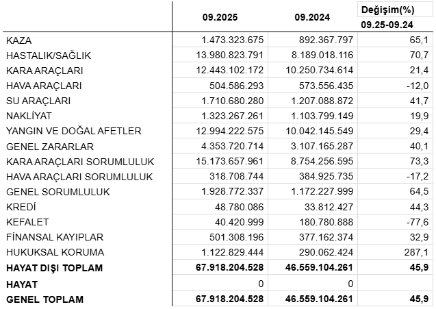 Branşlara göre Anadolu Sigorta’nın 2025 yılı 9 aylık prim üretimleri şu şekilde: