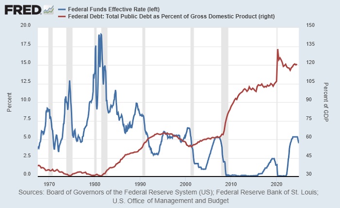 ABD tarafında borcun ekonomiye oranı, uzun bir aradan sonra yeniden tarihsel olarak yüksek seviyelerde. Üstelik burada kritik bir fark var: 1980’lerin sonundan 2020’ye kadar uzanan dönemde faizler genel olarak düşüş eğilimindeydi. Bu eğilim, borcu yönetmeyi kolaylaştırdı. Çünkü borç büyüse bile, faiz maliyeti görece düşük kalabiliyordu.