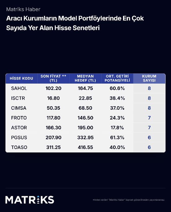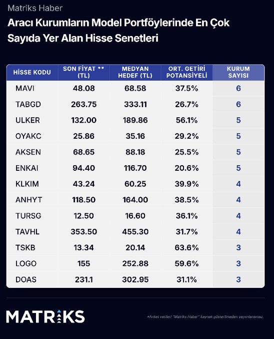 Matriks Model Portföy Haritası Araştırması: Aracı Kurumların Model Portföylerinde En Fazla Yer Alan Hisseler Açıklandı