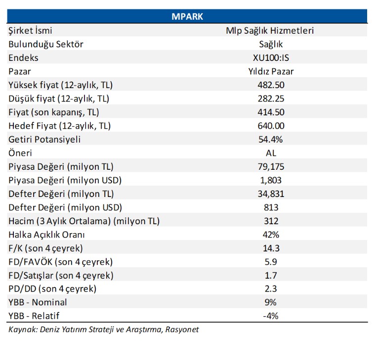 Deniz Yatırım’dan MLP Sağlık (MPARK TI) Bilanço Değerlendirmesi