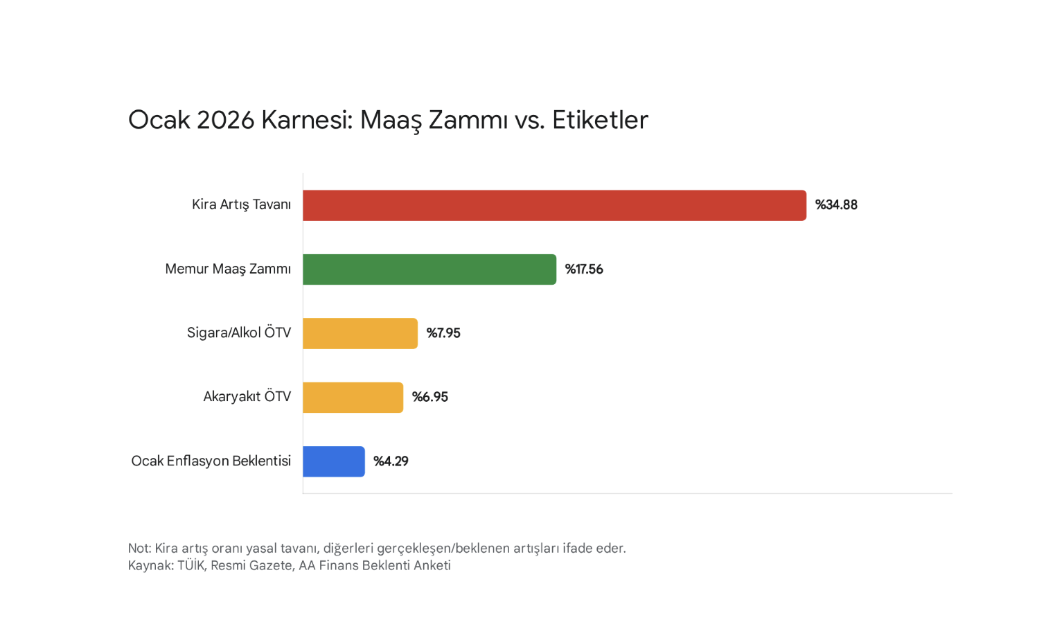 Peki, Ocak ayında vatandaşın bütçesi nasıl bir sınav verdi? Veriler, yapılan maaş zamlarının önemli bir kısmının daha ilk aydan eridiğini gösteriyor: