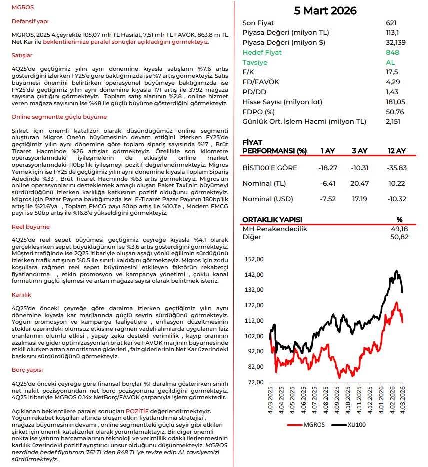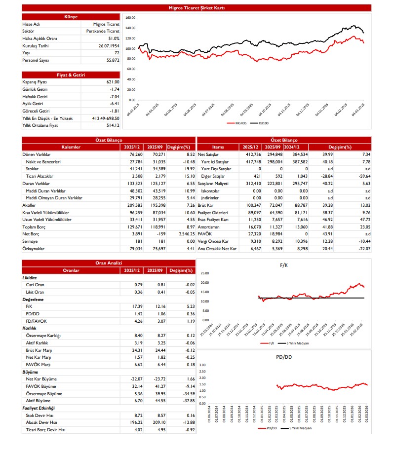 ABD-İran savaşı nedeniyle 12.800’e geri çekilen endeks, gelen tepki alımları ile yeniden 13.000’in üzerine yükseldi. Endekste 13.000 seviyesi 50 günlük hareketli ortalamaya işaret ediyor. Bu seviye tepki alımlarının ileri taşınması ve geri çekilme riskinin geride kalması için öne çıkıyor. 13.000’in üzerinde trade amaçlı alım yapılabilir, 12.800 stop loss olarak takip edilebilir görüşündeyiz