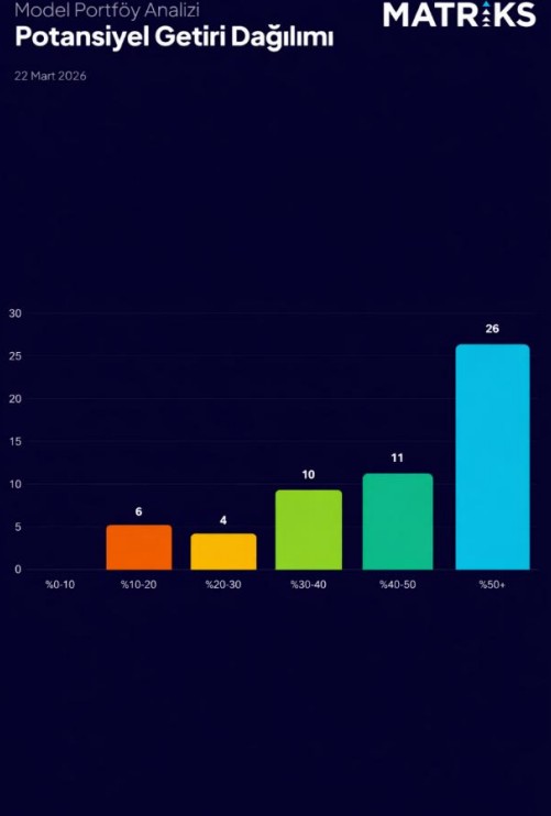 Genel görünüm, model portföylerdeki hisselerin büyük bölümünün %30’un üzerinde potansiyel taşıdığını ortaya koyarken, özellikle %50 üzeri getiri öngörüsüne sahip hisselerin ağırlığı, piyasa beklentilerinin pozitif yönde yoğunlaştığını gösterdi.