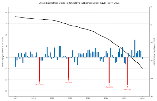 Rezerv değişimi negatifse → Merkez Bankası dolar satarak TL’deki değer kaybını sınırlamaya çalışıyor.