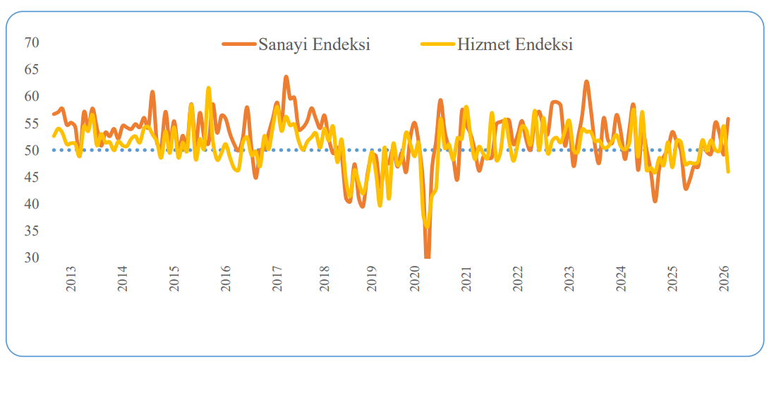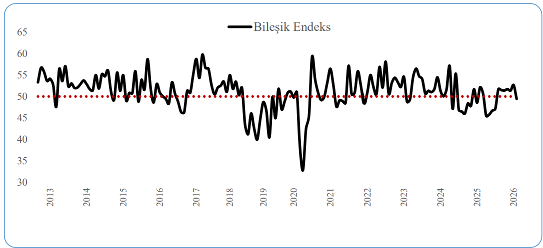 50 referans değerinin altına inilmesi, ekonomik aktivitede daralma sinyallerinin güçlendiğini gösteriyor. İş dünyasında faaliyet temposunun sınırlı kaldığı ve momentum kaybının belirginleştiği görülüyor.