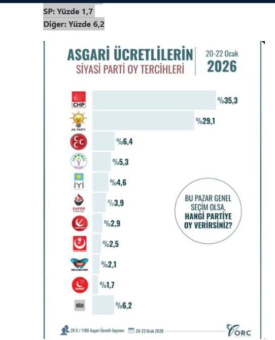 2026 yılına ekonomik krizin ve ardı ardına gelen zamların gölgesinde giren Türkiye’de, anket firmalarından gelen son veriler siyasi dengelerin kökten değişmeye başladığını gösteriyor. ORC Araştırma, PIAR ve HBS Araştırma tarafından Ocak ayında gerçekleştirilen çalışmalar; özellikle hayat pahalılığından en doğrudan etkilenen kesim olan asgari ücretliler ve geleceğinden endişeli gençler arasında CHP’nin açık ara birinci parti konumuna yükseldiğini ortaya koyuyor.