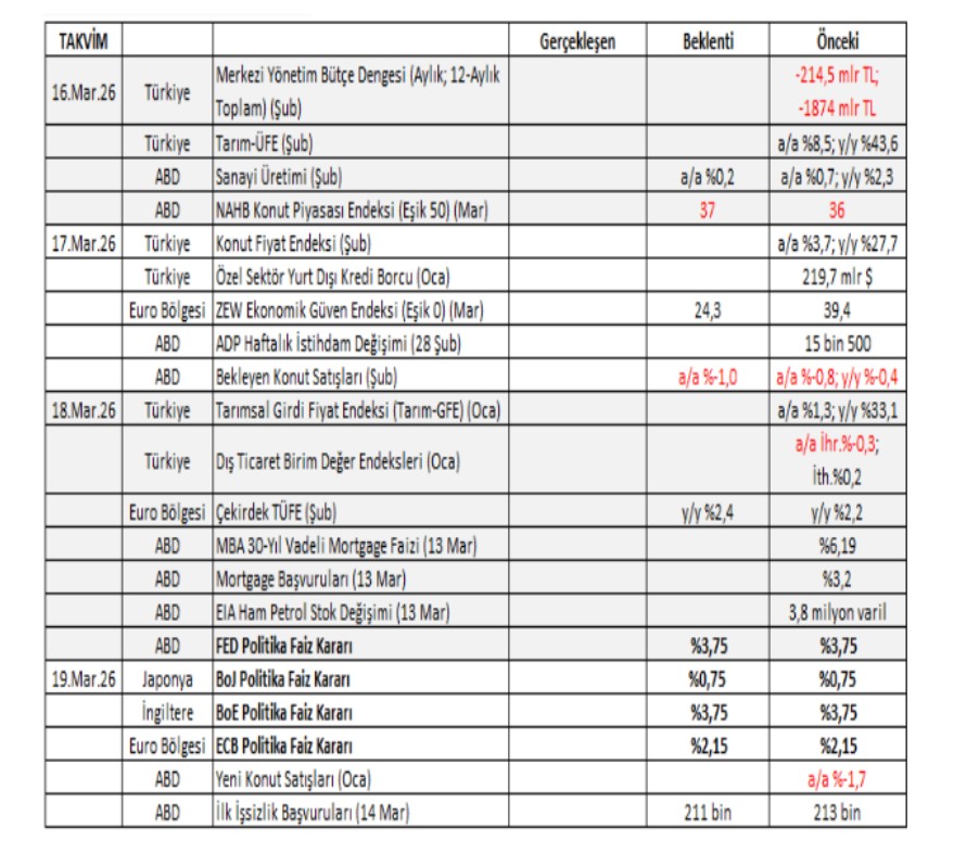 16 Mart 2026 – Makroekonomik Veri Gündemi