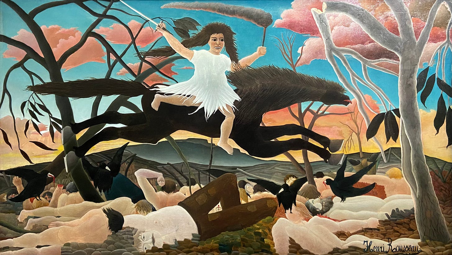 Rousseau, sanat tarihçilerini hâlâ zorlayan bir isim; sınıflandırmak kolay değil. Post-Empresyonizm’in sınırlarında gezinir, Naif Sanat akımının simgesi olmuştur, ama Sürrealizm’in de ruhani atasıdır.