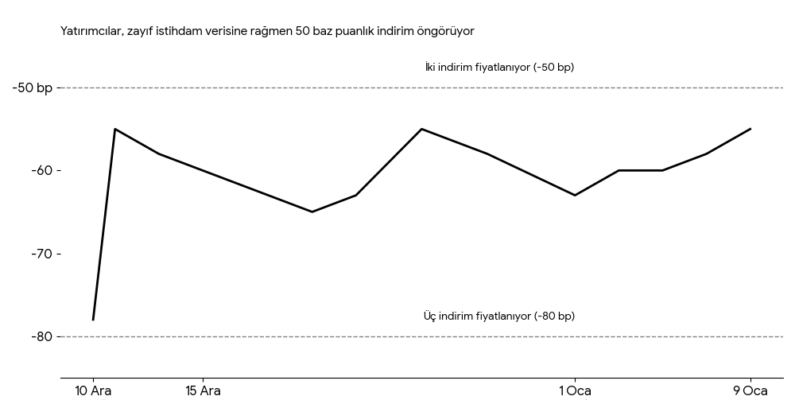ABD’de Aralık ayı istihdam verileri, zayıf işe alıma rağmen işsizlik oranındaki düşüş ve ücret artışlarının sürmesiyle piyasalarda “ters yönlü” bir fiyatlamaya yol açtı. Tahvil getirileri yükselirken, yatırımcılar Fed’in bu ay faiz indirimine gitme ihtimalini neredeyse tamamen fiyatlamalardan çıkardı. Hisse senetlerinde ise temkinli bir iyimserlik hâkim.