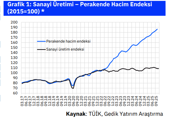 Sanayi üretimi Kasım ayında aylık bazda %2,5 artarken, yıllık bazda yeniden pozitif bölgeye geçti. Türkiye İstatistik Kurumu (TÜİK) verileri, üretimdeki toparlanmanın ağırlıklı olarak yatırım ve enerji odaklı sektörlerden geldiğini, buna karşılık tüketim mallarına dayalı sektörlerde kırılganlığın sürdüğünü ortaya koyuyor. PMI ve elektrik tüketimi göstergeleri, kısa vadede sanayi üretiminde aylık bazda pozitif seyrin devam edebileceğine işaret ediyor.